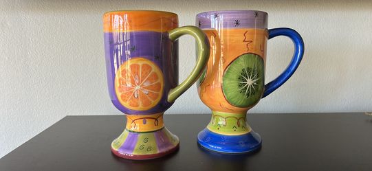 Set of 2 Fruit Pattern Pedestal Latte Mugs Hand Painted by Milson and Louis$20Boynton Beach, FL