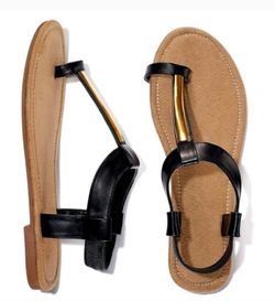 Black And Gold T Strap Toe Loop Sandal, $20El Paso, TX