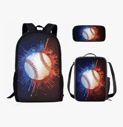 3-Piece Backpack Set with Lunch Box & Pen Case, Baseball Blue/Red Splatter, NEW$25Dayton, OH