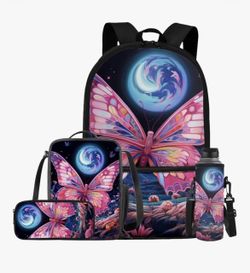 4Pc Pink Butterfly Kids Backpack Set with Lunch Bag, Pen Bag, and Water Bottle Case Cover, NEW$25Dayton, OH