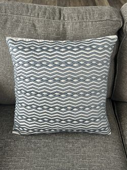 16”x16” Embroidered Accent Pillow, Light Gray with Blue Embroidered Pattern, NEW$20Dayton, OH