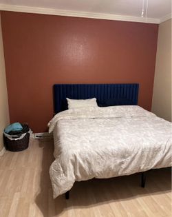 Used-Like New Navy Blue King Size Bed Frame, Velvet Upholstered Platform$230Pompano Beach, FL