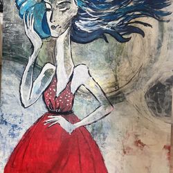 Maas Painting Of Girl In Red Dress - On Hanging Wire $20Los Angeles, CA