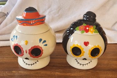 Pair Of Ceramic Day Of The Dead Cookie Or Candy Jars - Dias De Los Muertos Canisters- Nice Cond$30Sun City, AZ