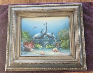 Vintage Original Signed Charles Benolt Dolphin Sea Life Oil Painting, 10" X 8", Ornate Wood Frame$150Sun City, AZ