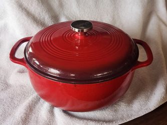 Gently Used Lodge 6 Quart Red Enamel Cast Iron Dutch Oven With Lid, Dual Handles, With Box$45Sun City, AZ