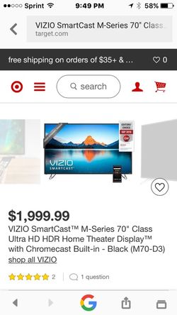 Vizio 70" 4K Tv Model # M70-D3, like brand new , please read specs , MUST SELL$1,250Greenwood, IN