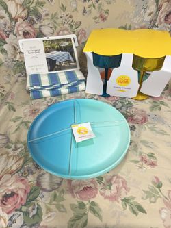 Summer set, margarita glasses, plate, rectangular table cloth$25Bainbridge, MD