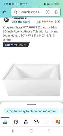 60-in X 32in Acrylic Alcove Tub with Right Hand$275Fresno, CA