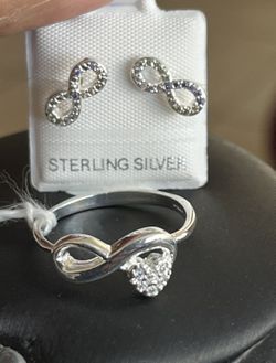 Set De Aretes Infinito Y Anillo 💍 Infinito ♾️ De Plata.925$55San Diego, CA