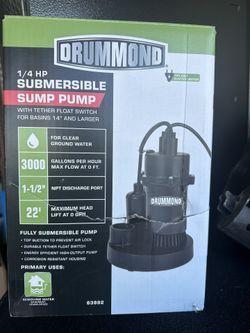 New DRUMMOND 1/4 HP Submersible Sump Pump 3000 GPH$40Hacienda Heights, CA