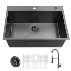 33 in. Drop-In Single Bowl 18 Gauge Gunmetal Black Stainless Steel Kitchen Sink with Black Spring Neck $245North Las Vegas, NV
