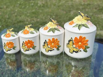 Vintage Floral Butterfly Ceramic Kitchen Canisters made in Japan retro kitschy MCM Mid Century Complete set of 4 $180Pembroke Pines, FL