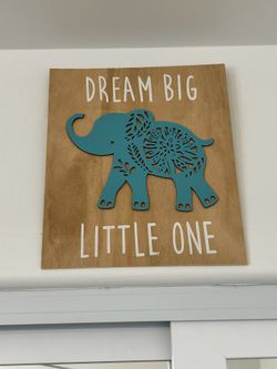 Levtex Dream big little one Blue Elephant Wooden Wall Hanging$15Bakersfield, CA