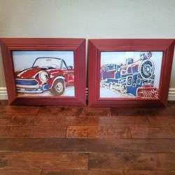 KIDS BOYS GIRL ROOM HANDPAINTED CANVAS WALL ART DECOR, RED DISTRESS FRAME, CAR & TRAIN PICTURE, MODERN FARMHOUSE SHABBY CHIC$95Rancho Santa Margarita, CA