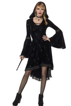 HALLOWEEN GIRLS WOMENS LARGE WITCH COSTUME, BLACK VELVET DRESS w/ RED VELVET CLOAK, VAMPIRE VAMPIRESS GOTHIC VICTORIAN, $70 RETAIL $40Rancho Santa Margarita, CA
