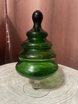 Vintage Empoli Italian Art Glass Green Christmas Tree Covered Candy Dish/Jar 70s$80San Tan Valley, AZ