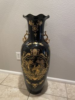 Large Chinese Floor Vase Black With Gold Design 3 ft High Vintage$100San Tan Valley, AZ