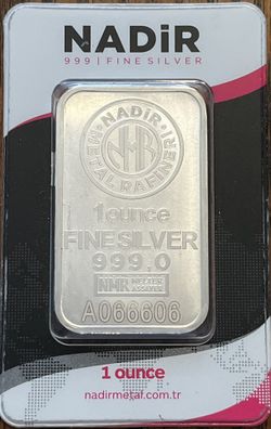 1 Oz Silver Bar NADIR .999 Fine Silver In Assay$124Santa Ana, CA