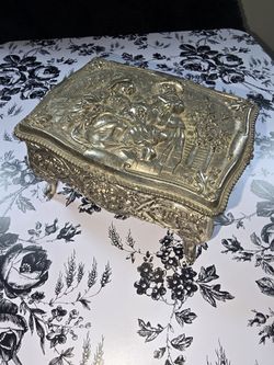 Vintage Ornate Silver Jewelry Trinket Box With Victorian Ladies Red Inside$40Oswego, IL