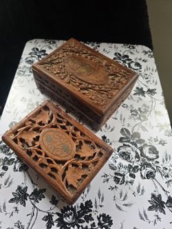 2 Vintage Hand-Carved Wooden Boxes Floral Design $40Oswego, IL