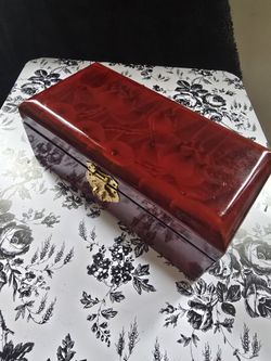 Vintage Chinese Red Floral Lacquered Wooden Jewelry Box With Brass Latch$25Oswego, IL