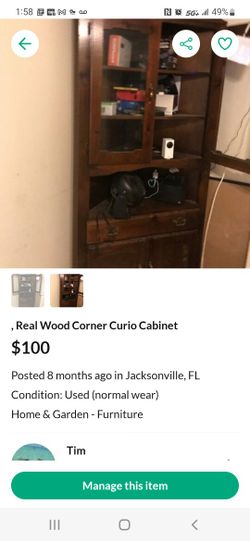 Real Wood Corner Curio..75.00$65Jacksonville, FL