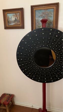 Beautiful wooden circular mirror black and golden color excelente condition$50Hesperia, CA