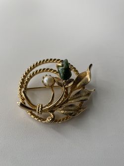 Vintage Sarah Coventry Jade Garden Cultured Pearl Jade Stone Wreath Pin Brooch$10Palm Shores, FL