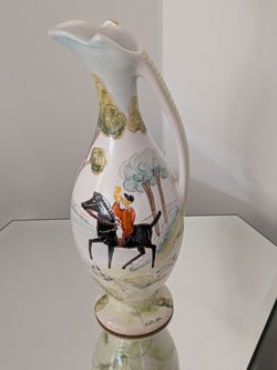 Signed Furlan" Vtg Bischoff Cherry Wine Decanter Jug Man Riding Horse 11.5"$20New Haven, CT