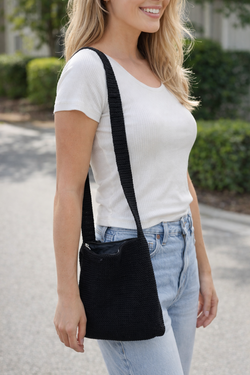 Old Navy Black Shoulder Bag Crochet Accents Zip Closure Shoulder Strap Women's$15Carlsbad, CA