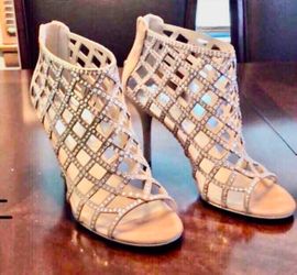 MK size 10 Rhinestone Embellished suede boot style with zippered back open toe$49Babylon, NY