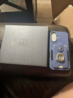 Blue iPhone 16 phone case with ring holder, card holder and screen protector $12New Orleans, LA