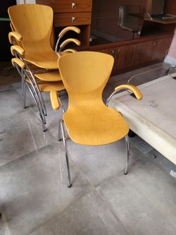 Mid Centry Danish Table With 3/4 Inch Black Glass 4 Bingo Chairs$500Riverside, CA