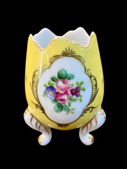 1970’s Porcelain Hand Painted Footed Egg Bud Vase With Gold Accents$12Mcallen, TX