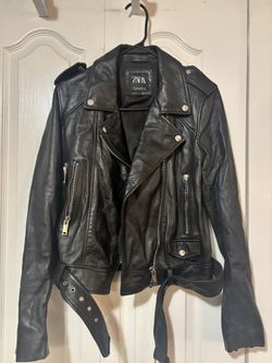 Zara Genuine Sheep Leather Motorcycle Black Moto Biker Asymmetric Size Large $75Phoenix, AZ