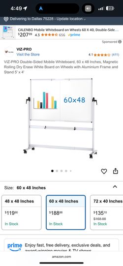Brand New Double-Sided Rolling Whiteboard$140Irving, TX