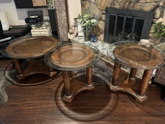 NICE!! 3 PC GLASS & WOOD COFFEE/END TABLES!$135Yorba Linda, CA