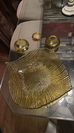 Amber Leaf Tray And Candle Holders $15Wake Forest, NC
