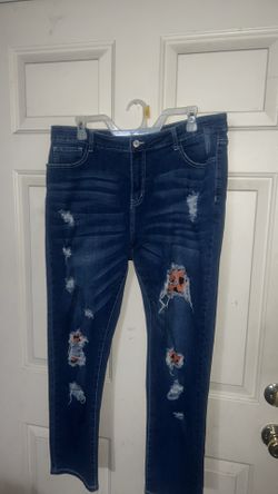 Blue jeans distressed bat theme size XL$15Whittier, CA