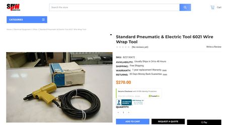 Standard Pneumatic & Electic Tool 6021 Wire Wrap Tool$100Norwalk, CA