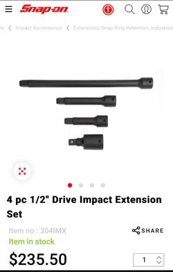 Snap On 4 Piece 1/2in Impact Extension Set $125Stockton, CA