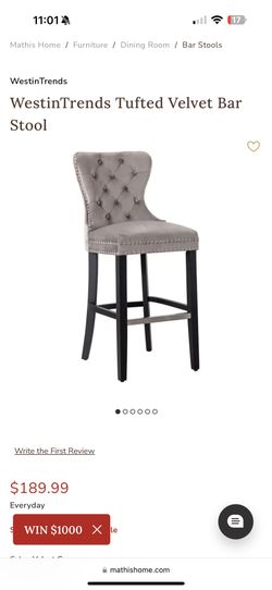Breakfast Barstools WestinTrends 29" Tufted Velvet Bar Stool$270,000Peoria, AZ