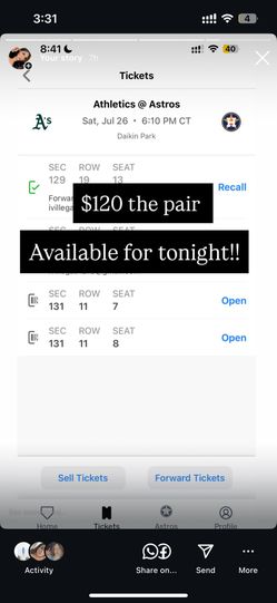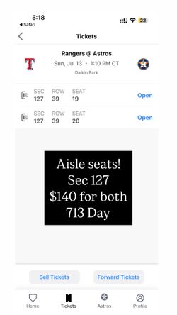 Tonight Thursday Astros Tickets $100Houston, TX
