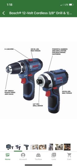 Bosch 12 Volt Cordless 3/8 Drill 1/4 Impact Combo Kit$140Bremen, IN