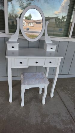 White Vanity Table Set w/ Mirror Stool$75Apple Valley, CA
