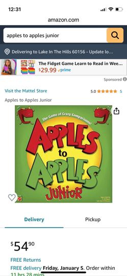 Apples To Apples, Junior$28Lake In The Hills, IL