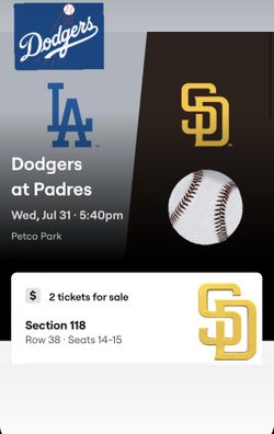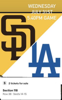 Dodgers Vs. Padres $145 Each Sec 118$145Chula Vista, CA