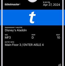 Aladdin Ticket 3 Front Row $150Lynnwood, WA