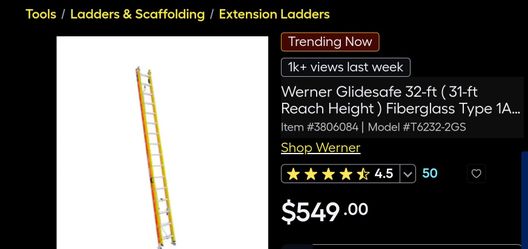 32 FOOT WERNER GLIDESAFE FIBERGLASS EXTENSION LADDER - GREAT CONDITION .$300South Farmingdale, NY